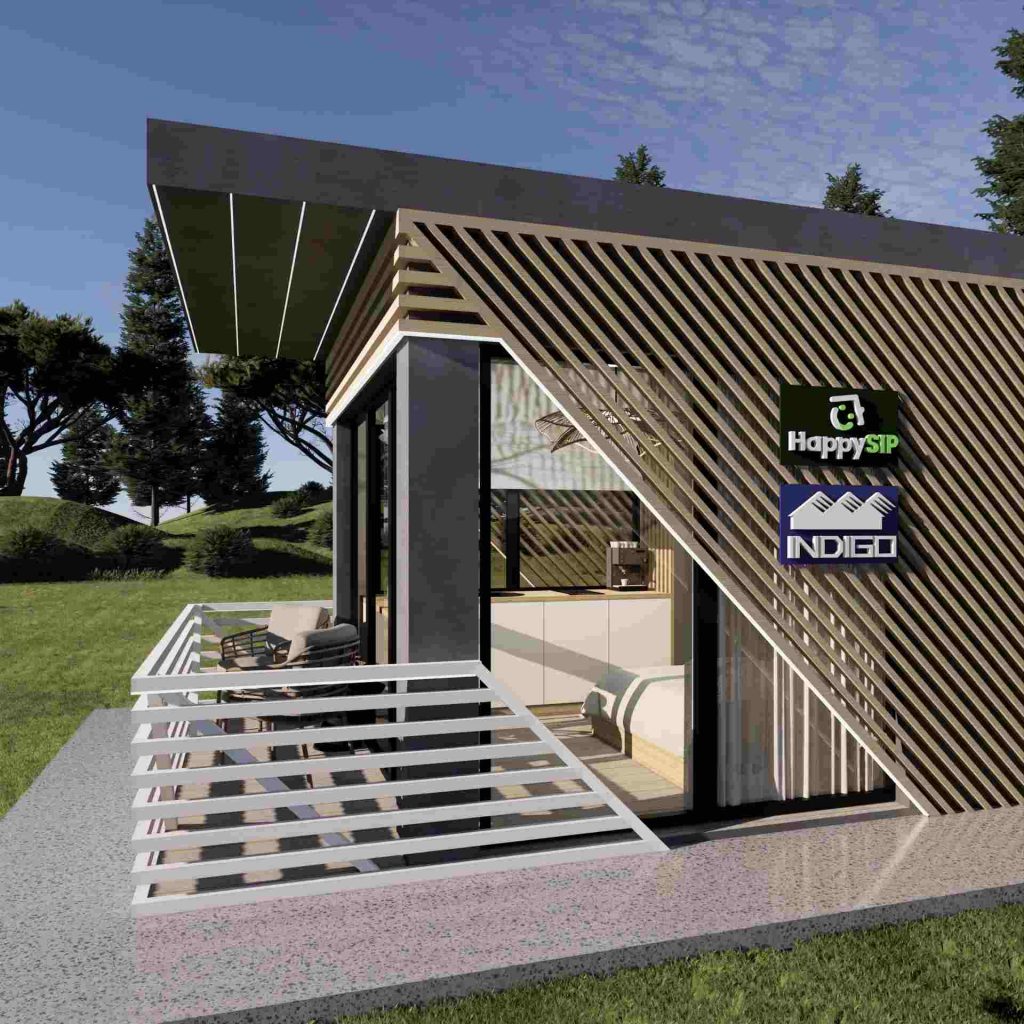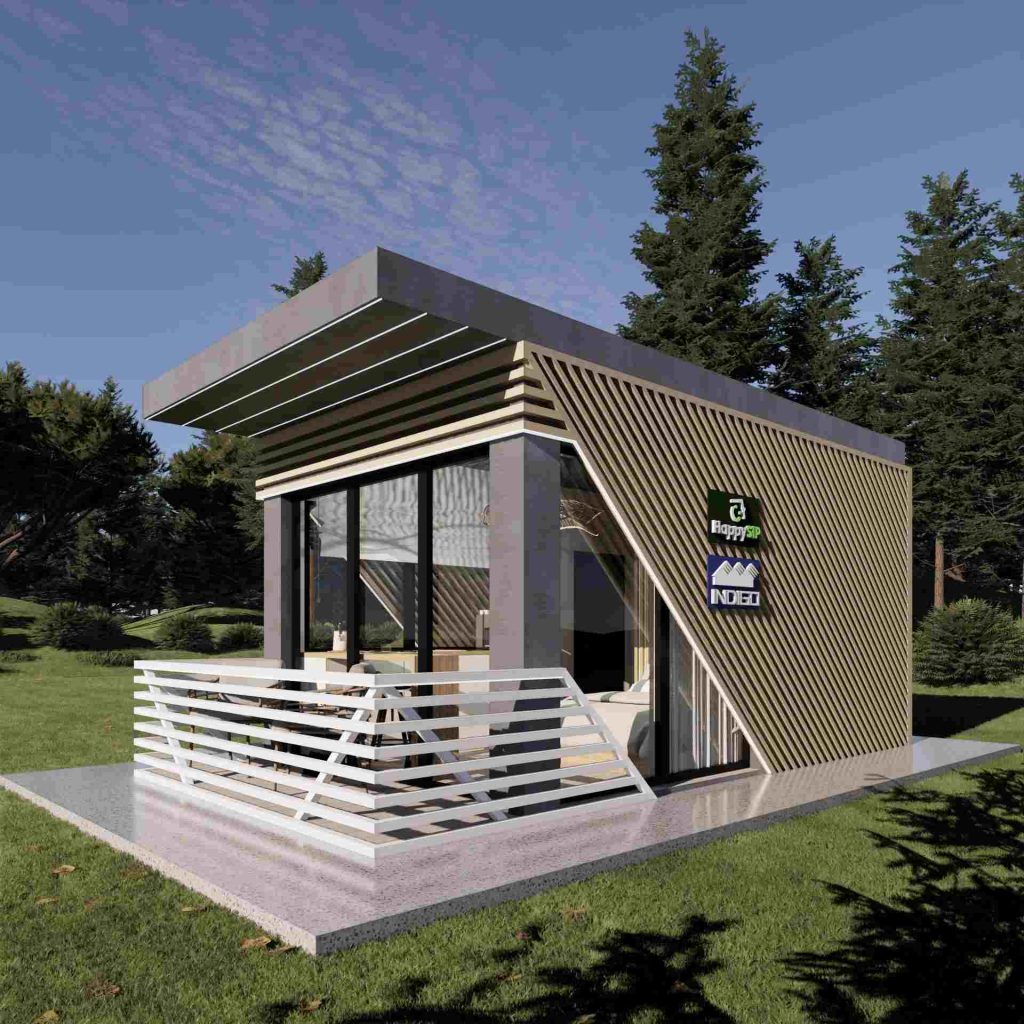 La capsula abitativa su struttura in legno e pannelli SIP, realizzata dal team di Happy Home Corporation, è un modello che propone un nuovo approccio nel settore HORECA, ma anche per le case vacanza. Questo modello è ideale per l'affitto in modalità alberghiera, con dimensioni compatte e una suddivisione ottimale degli spazi.