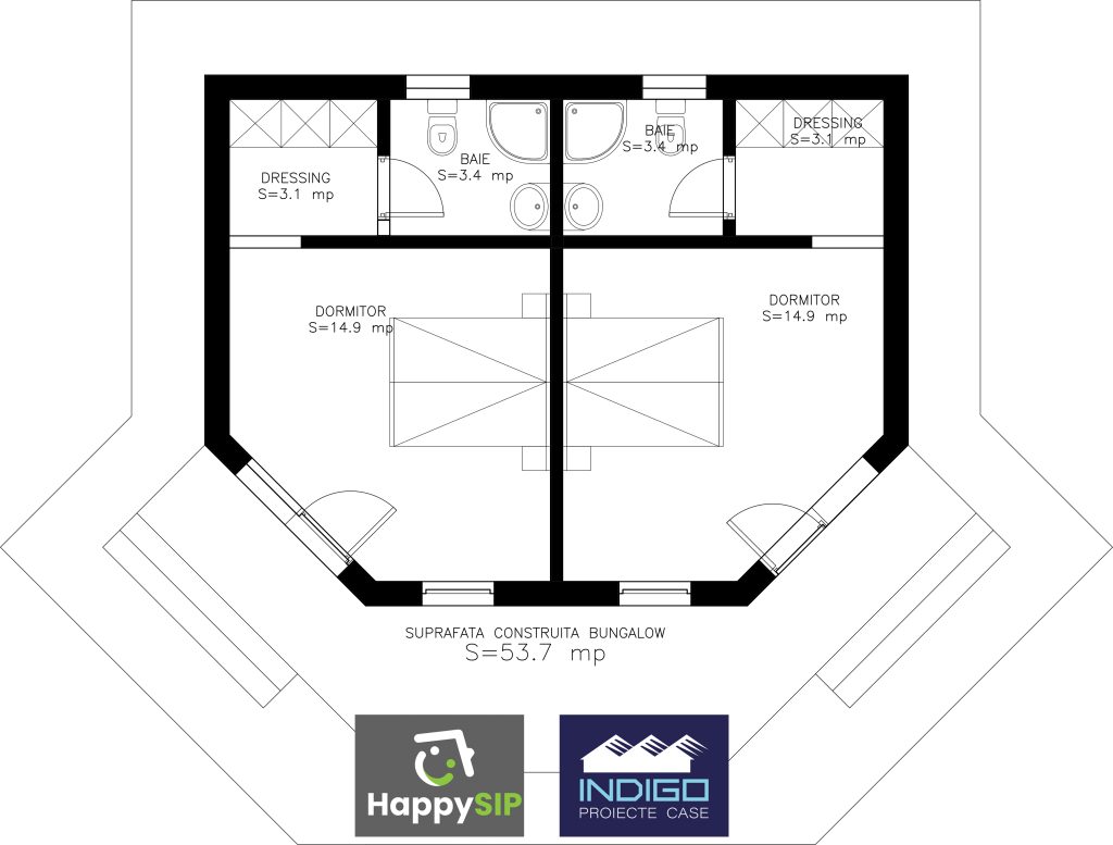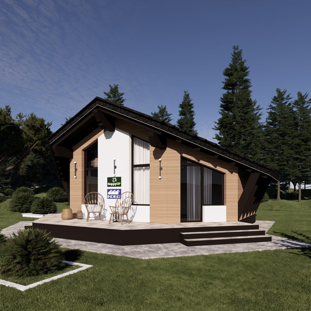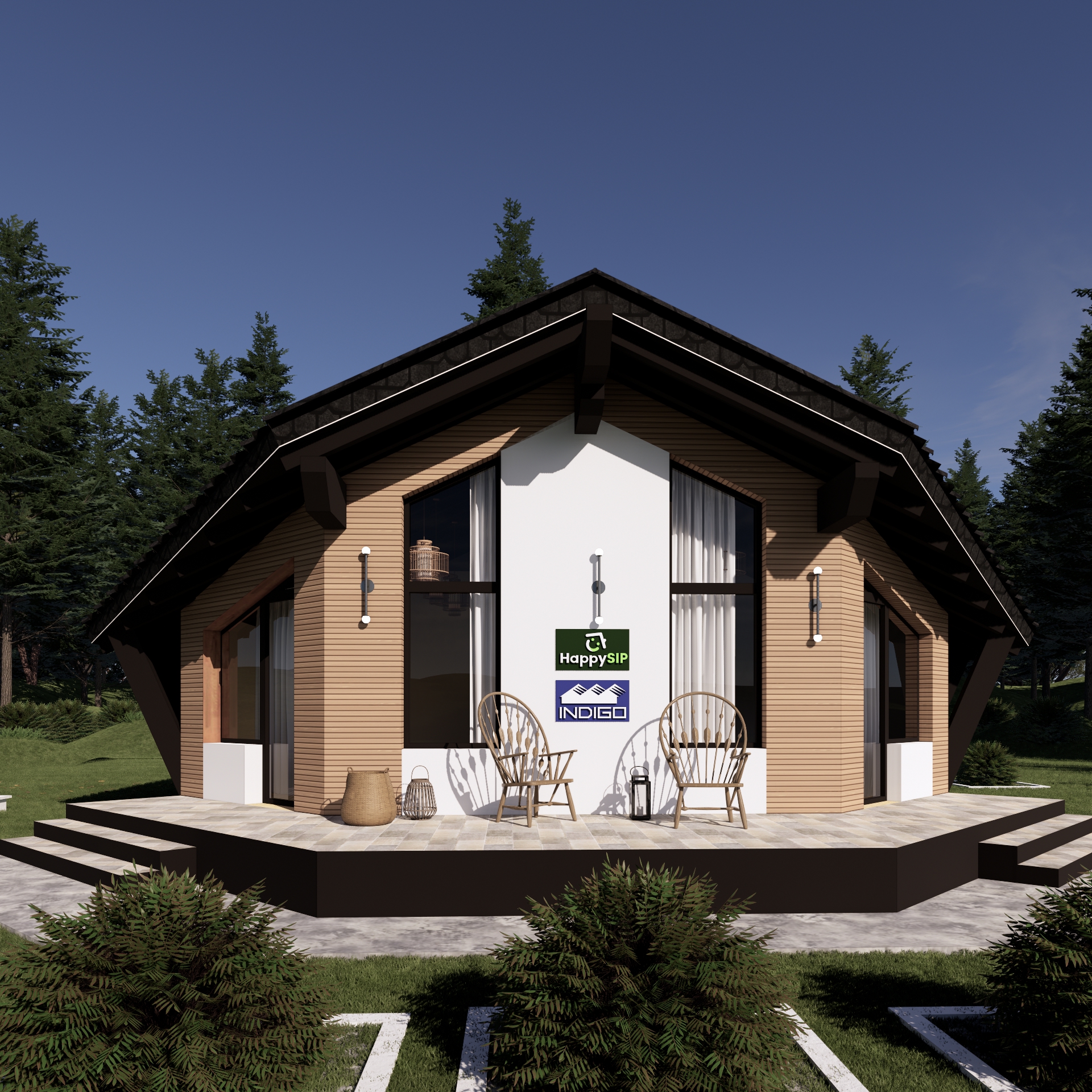 Costruzione molto piccola, di 54 mq, che può trovare spazio su qualsiasi terreno, sia accanto a un edificio esistente che come parte di un nuovo complesso.