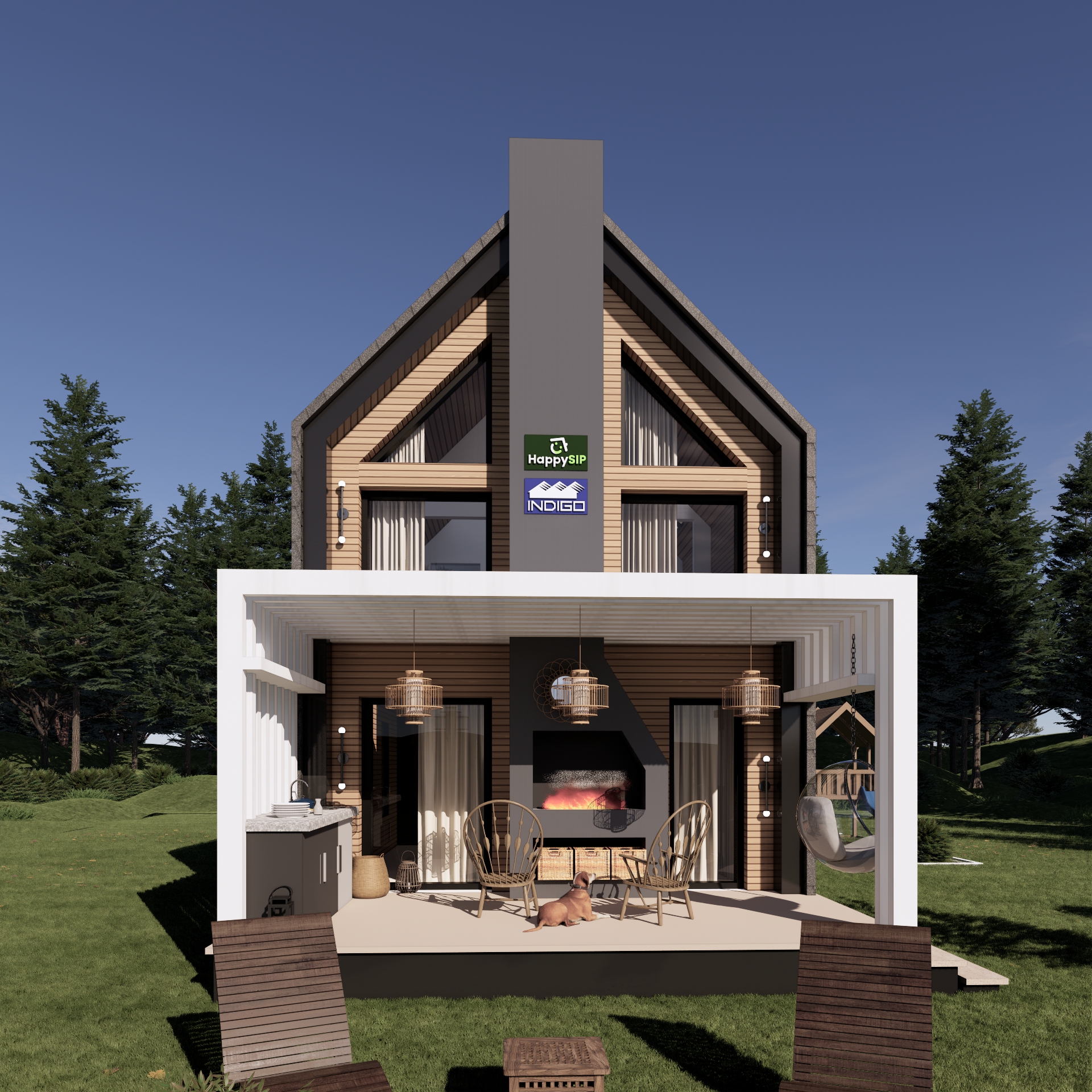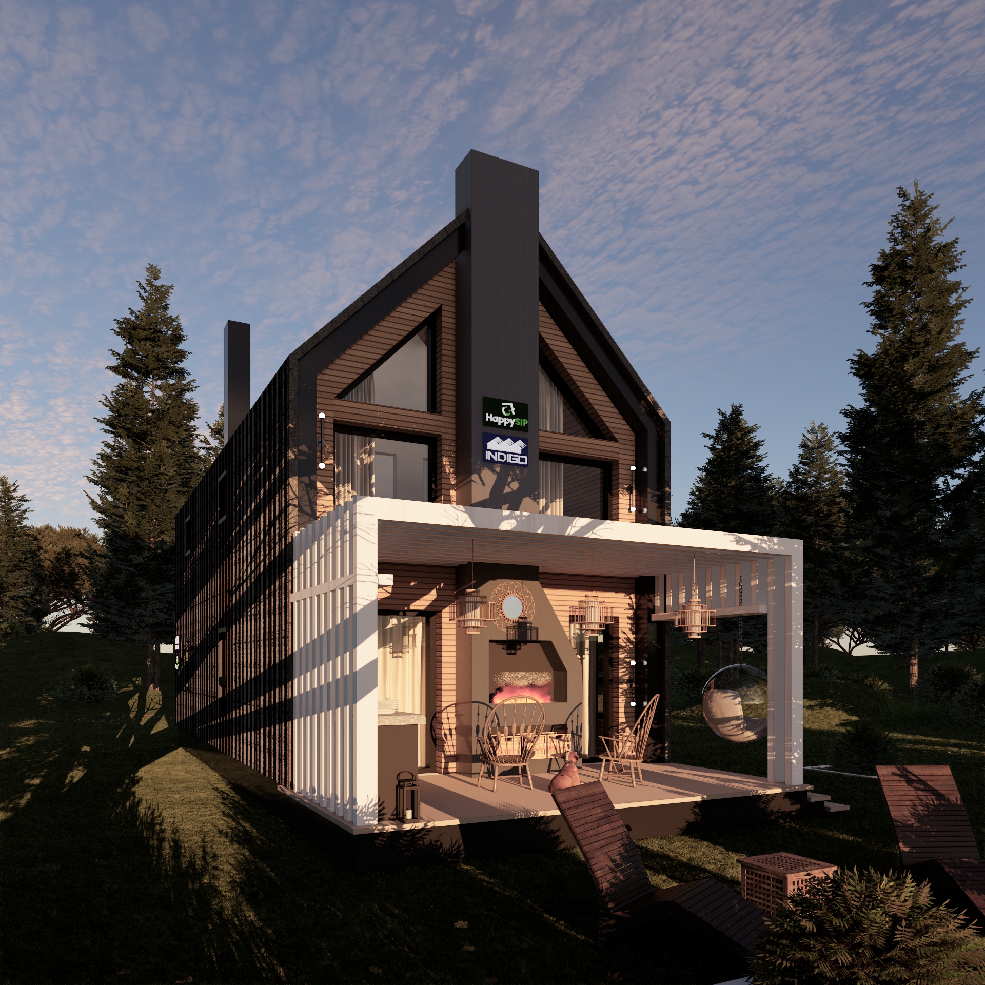 Casa di ispirazione scandinava, utilizzabile come abitazione permanente o come residenza turistica. Si adatta a qualsiasi tipo di terreno, anche se piccolo e stretto.