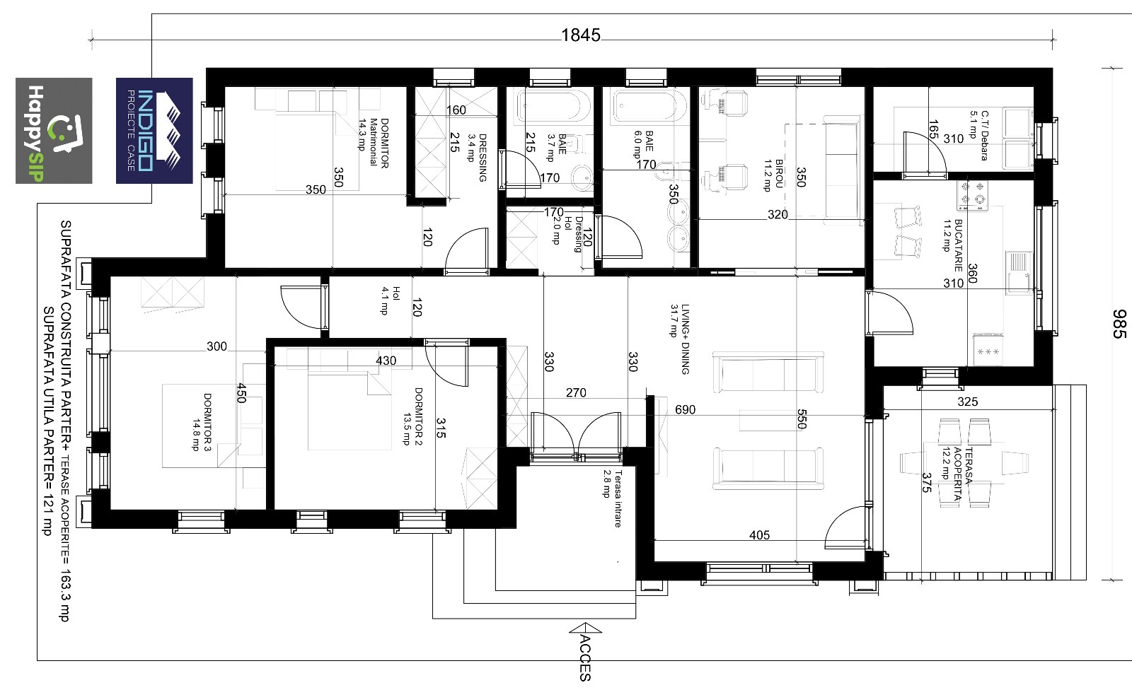 Una casa classica per una famiglia con almeno 2 bambini. Al piano terra si trova una camera matrimoniale con bagno privato, 2 camere per i bambini servite da un altro bagno e una camera per gli ospiti che può essere utilizzata come ufficio.
