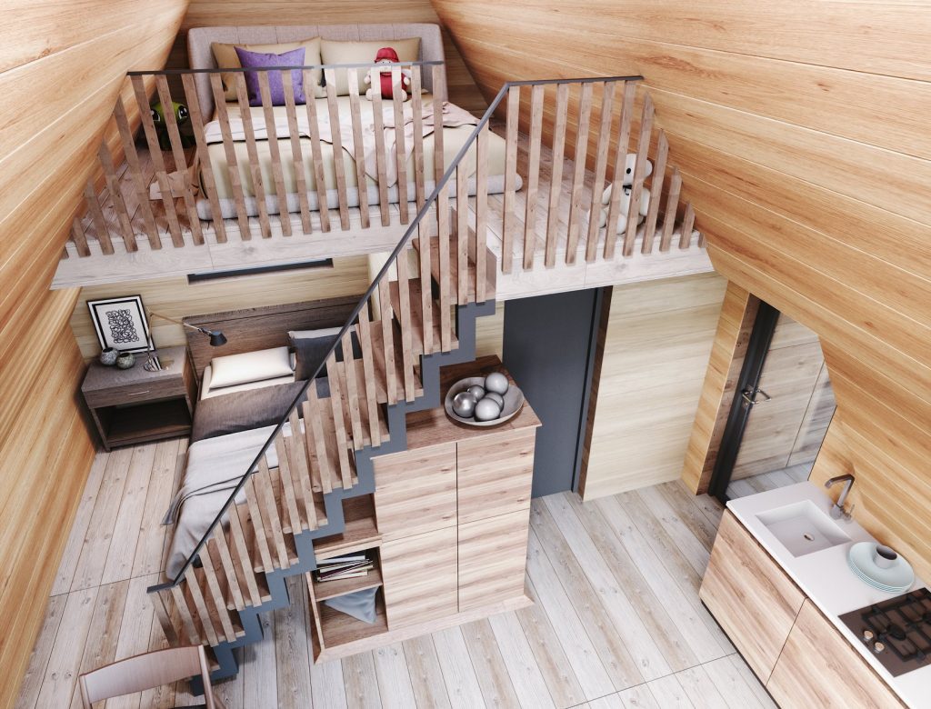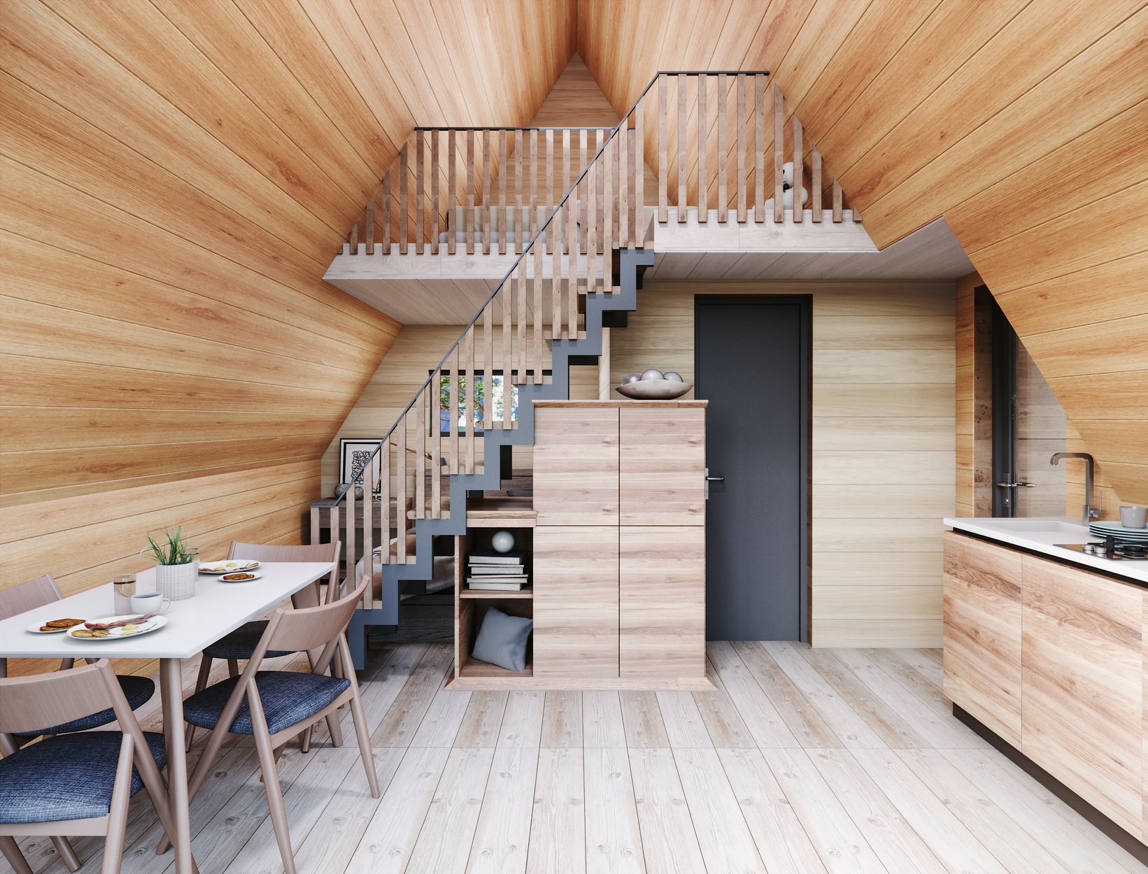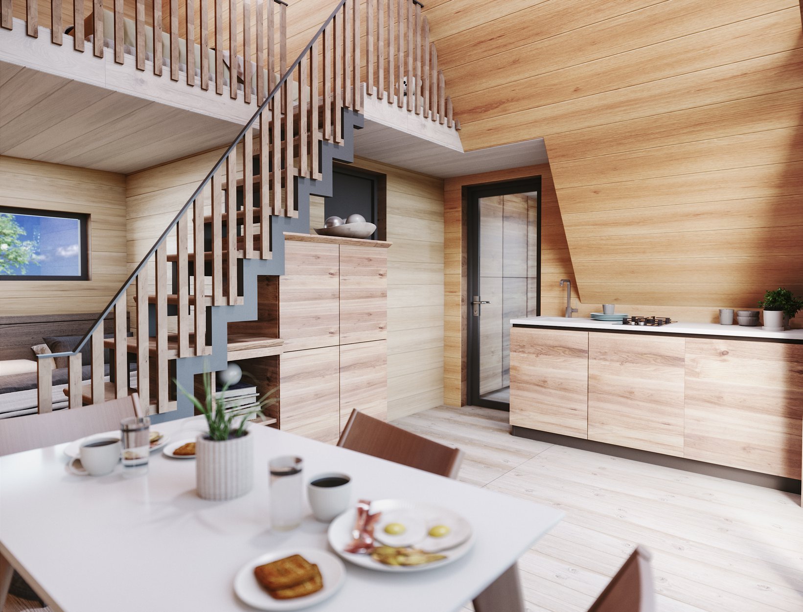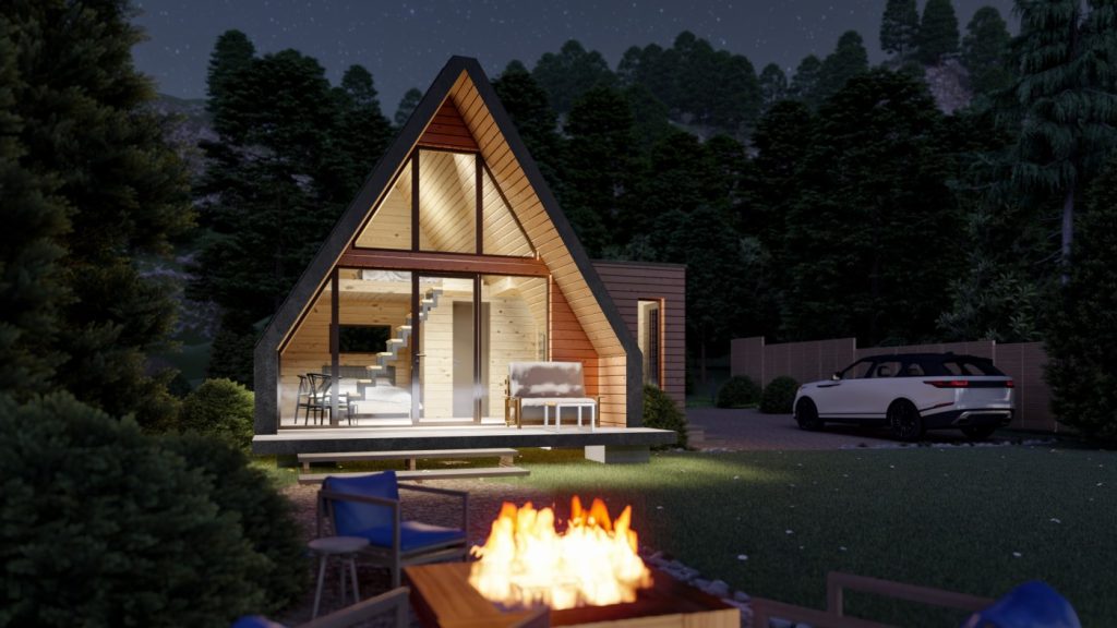 La versione più piccola e accessibile della nostra gamma A-frame. Questa casa vacanza, un mix di rustico e moderno, è progettata per soddisfare le esigenze dei clienti più esigenti grazie alla superficie ragionevole e ai materiali utilizzati.